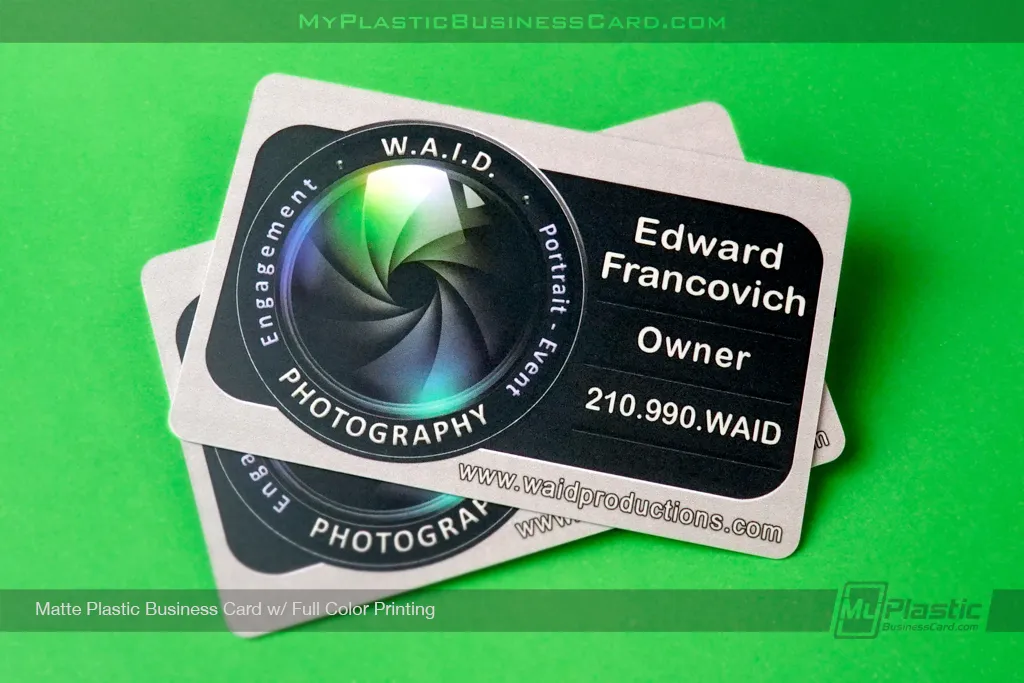 Our Matte Plastic Cards are expertly crafted to have the same look and feel as a credit card, with an elevated touch. It has never been easier to stand out in a sea of paper cards. We use .76mm thick plastic so your cards won’t rip or bend and can withstand the test of time. Our Matte Plastic paired with full-color printing produces colors that pop and allow gloss or foil to shine and get you noticed.